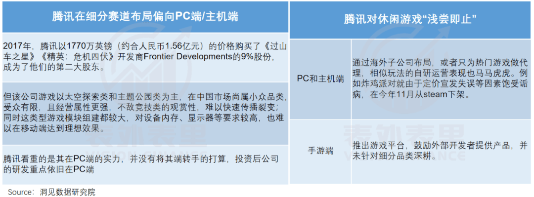 也由此,其在休闲游戏上“浅尝辄至”:一方面“买买买”后延续其之前在PC端的运营方式,另一方面,推出小游戏平台,鼓励外部开发者提供产品。